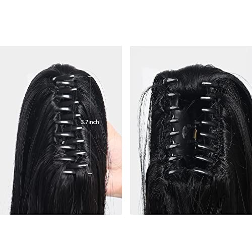 Generic - وصلة شعر مستعار لكامل الراس للنساء، وصلات شعر صناعية بتسريحة ذيل الحصان بطول 18 انش - لون اشقر رمادي مختلط مع خصلات جينجر - JW246 (JW-N1 اسود)