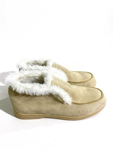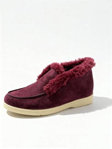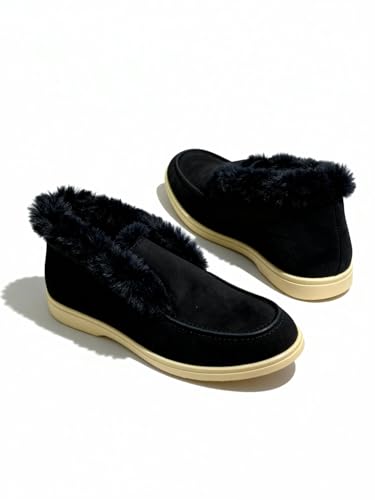 Generic - حذاء نصف بوت نسائي شمواه مبطن بالفرو، أحذية شتوية دافئة ومريحة بنعل مطاطي