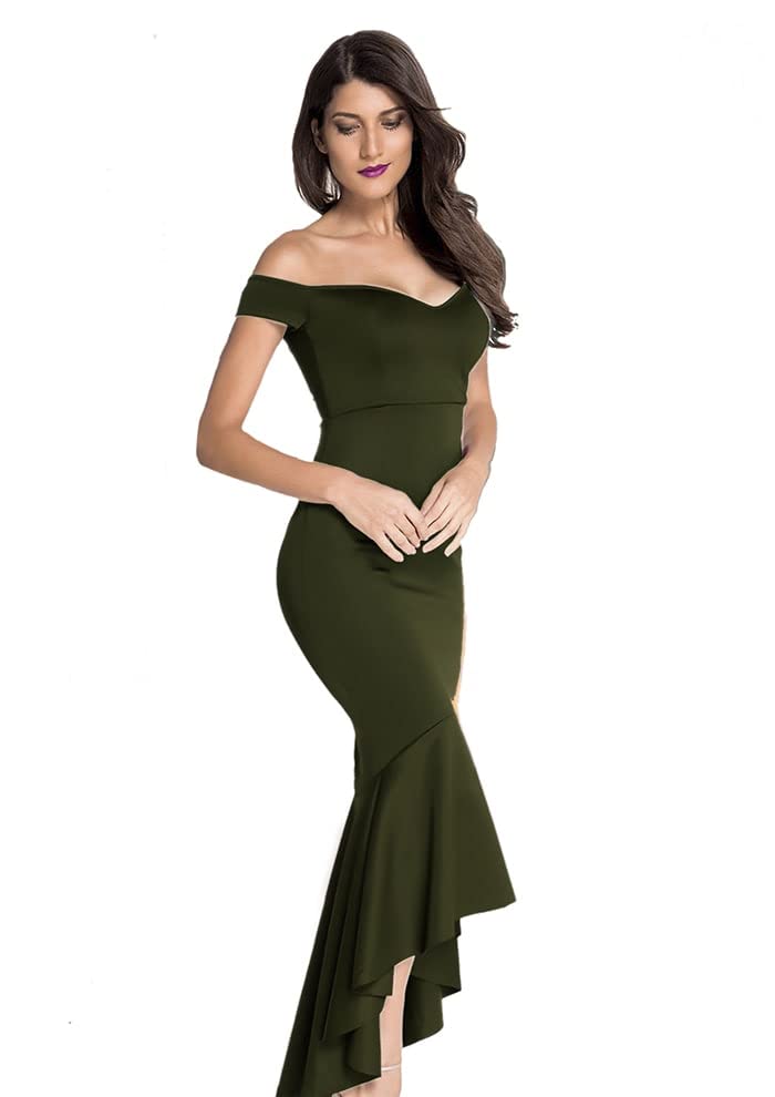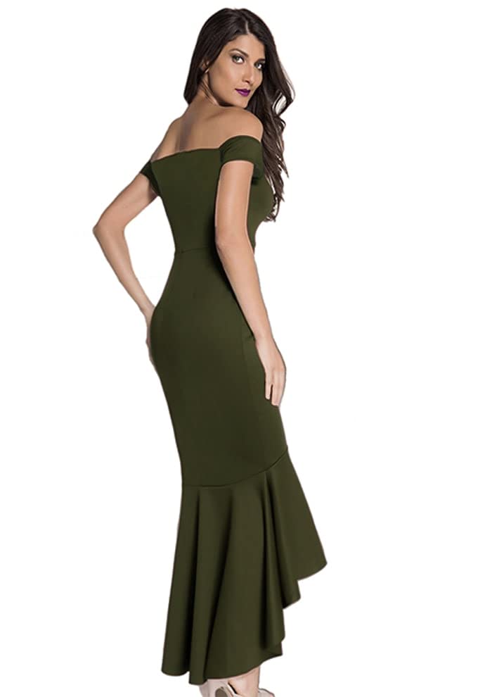 Generic - فستان نسائى طويل نصف كم لون زيتي