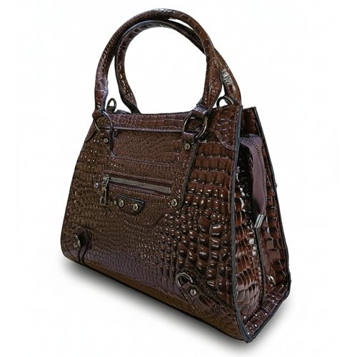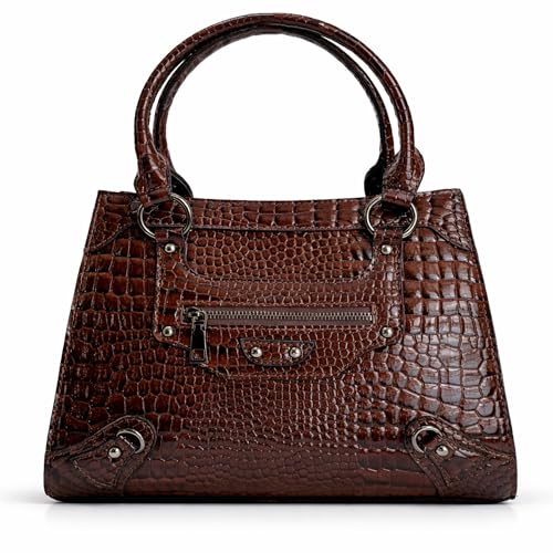 Generic - شنطة يد نسائية بنقشة جلد التمساح، جلد لازار عالي الجودة