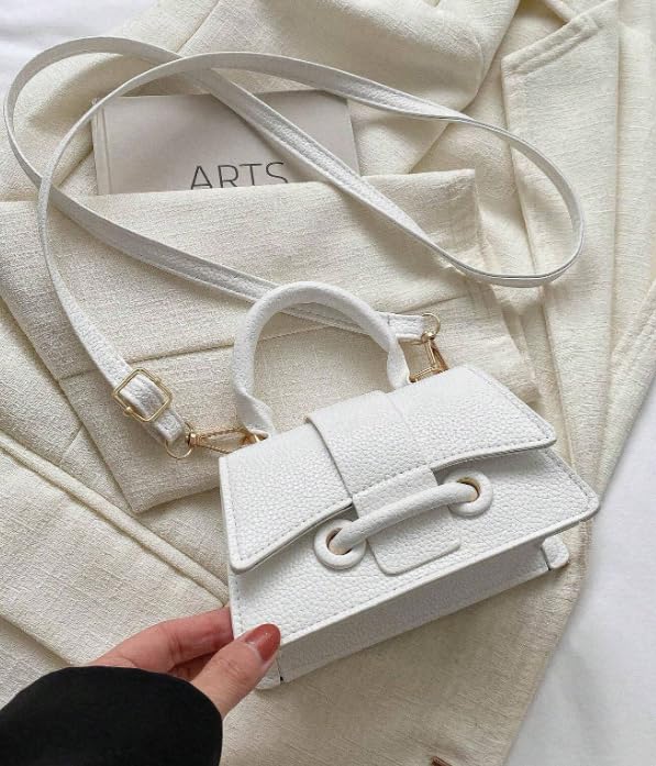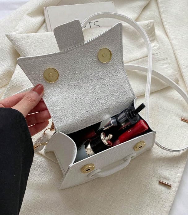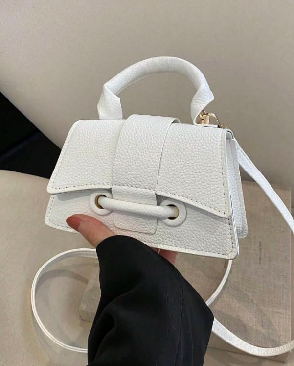 Generic - حقيبة يد وكتف نسائية – تصميم مربع صغير أنيق باللون الأبيض