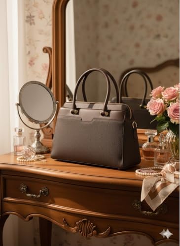 حقيبة يد نسائية كلاسيكية فاخرة، قماش وجلد، مقبض علوي، حجم متوسط، متعددة الاستخدامات للعمل والمناسبات، متوفرة بـ 4 ألوان
