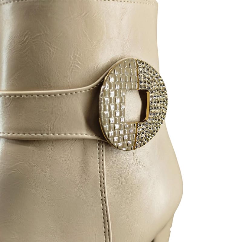 Generic - بوت بطول الكاحل بكعب عالي للنساء، لون بيج، مقاس 39