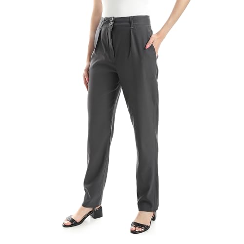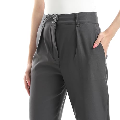 Generic - بنطلون عالي الخصر بكسر وساق مستقيمة مع جيوب للنساء