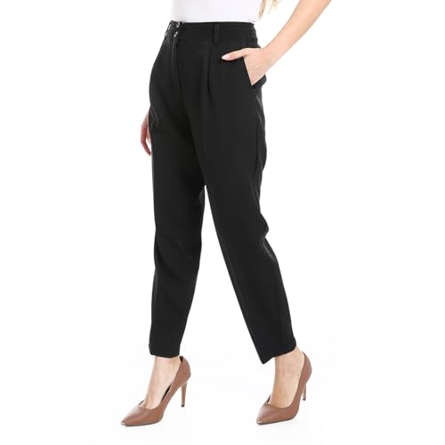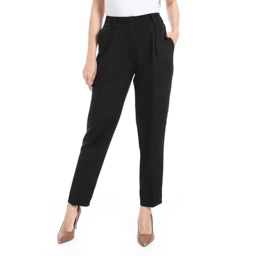 Generic - بنطلون بخصر مرتفع وكسرات بقصة كلاسيكية مع جيوب للنساء