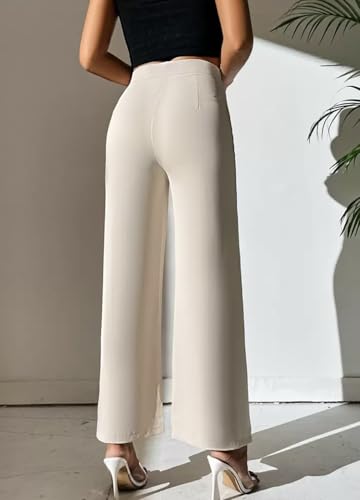 Generic - بنطلون نسائي بخصر مرتفع وارجل واسعة مع فتحات جانبية، ابيض كريمي، طول الكاحل، مقاس M