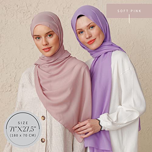 Ayisah - حجاب اسلامي شيفون ناعم حريري للنساء من عايشة سيلدا- سكارف رأس نسائي عصري مقاس 180 × 70 سم بجودة تركية فاخرة, سوفت بينك