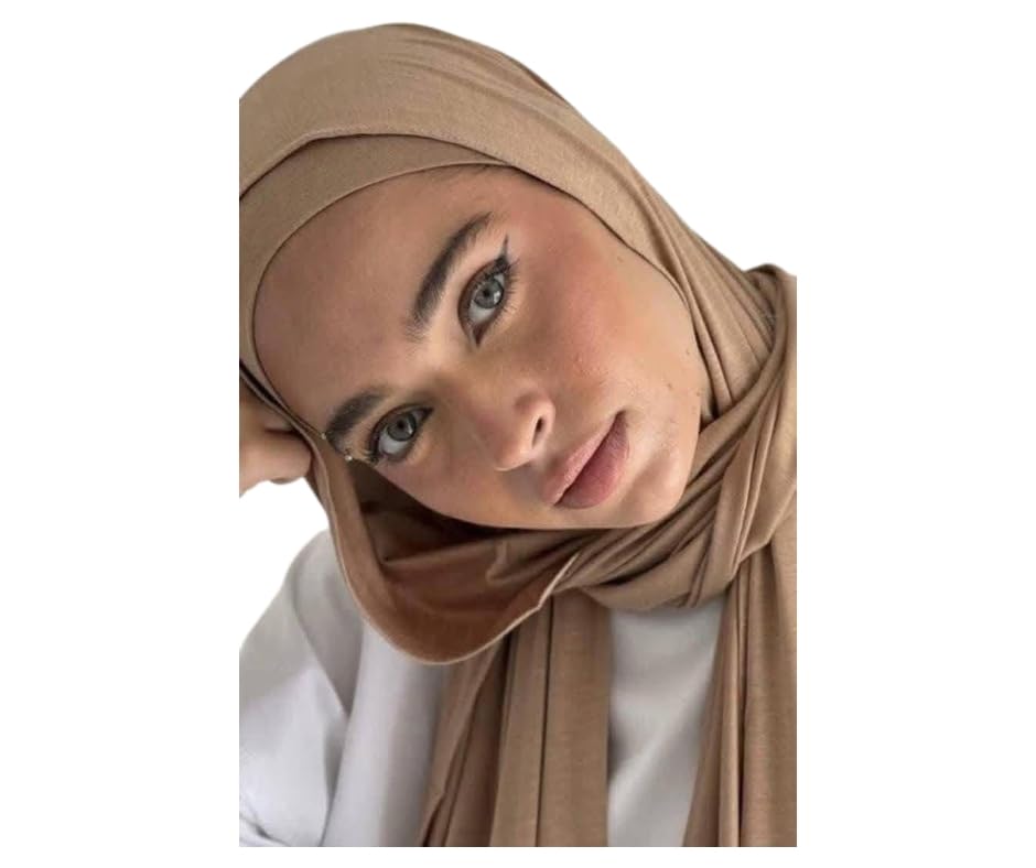 Generic - حجاب نسائي مع غطاء داخلي، بيج، طقم من قطعتين، وشاح رأس إسلامي محتشم