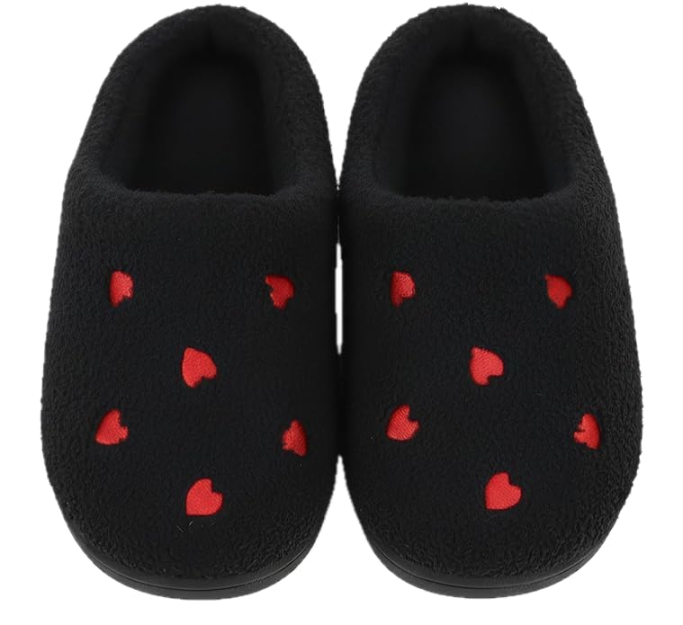 Generic - شبشب منزلي مخملي وسميك للنساء مع نعل ناعم وزخرفة على شكل قلب للشتاء