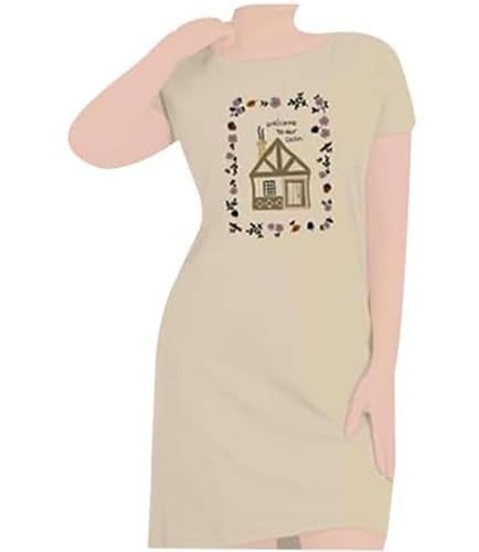 Generic - قميص بيتي للنساء من مجموعة الربيع والصيف، فستان نسائي بطباعة منزل محاط بزهور، مقاس لارج L، لون بيج