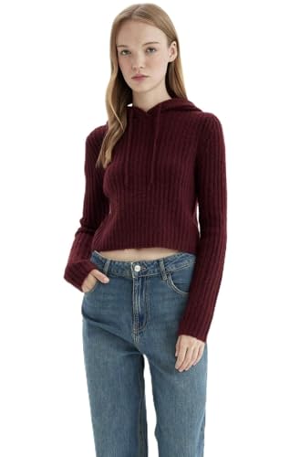 Generic - سترة نسائية بغطاء للرأس، بوردو، نمط محبوك، قصة قصيرة