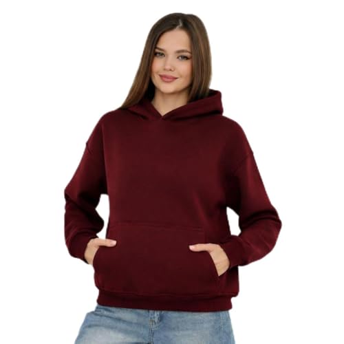 Generic - سويت شيرت بغطاء للرأس للنساء، بلوفر بأكمام طويلة وجيب أمامي، لون نبيتي، مقاس ميديوم M