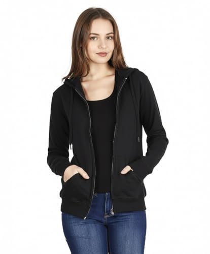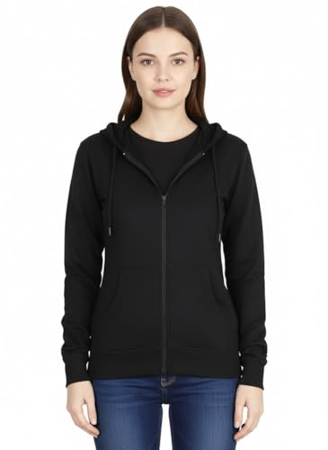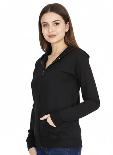 Generic - سويت شيرت بغطاء للرأس وسوستة وجيوب للنساء، لون اسود