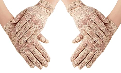Generic - قفازات دانتيل أنيقة للنساء من الدانتيل (بيج 2 زوج)