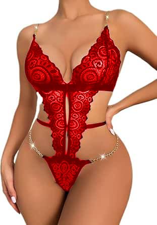 Generic - سالوبيت بكباسين تيدي من الدانتيل للنساء مع أشرطة سلسلة، رقبة على شكل حرف V