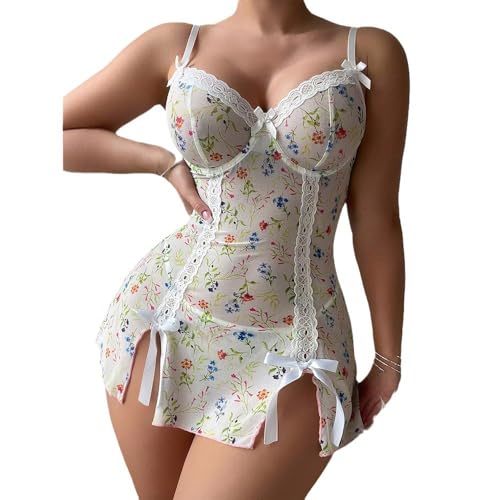 Generic - لانجيري تل نسائي مزين بالدانتيل - قميص نوم قصير- بيبي دول أنثوي مريح - تصميم أنيق وجذاب
