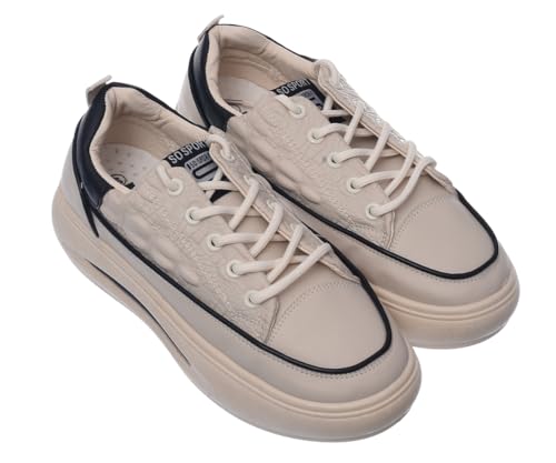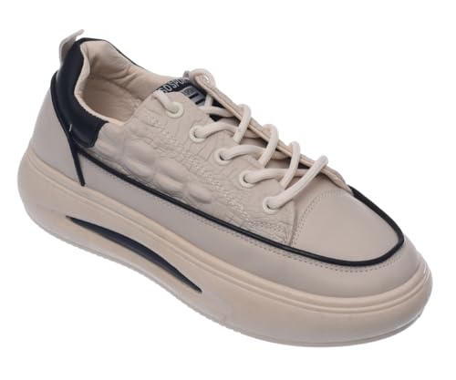 حذاء رياضي بكعب عالي ورباط للنساء (بيج، 41)