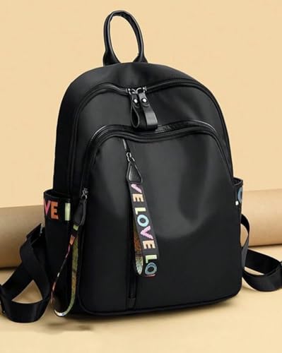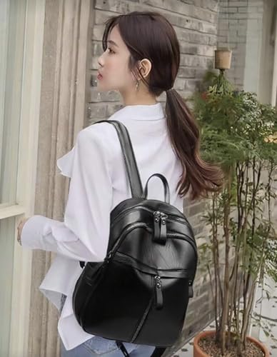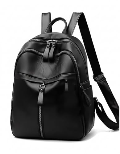 Generic - شنطة ظهر جلدية للنساء، اسود، تصميم متعدد الجيوب مع جيب امامي بسوستة واشرطة قابلة للتعديل