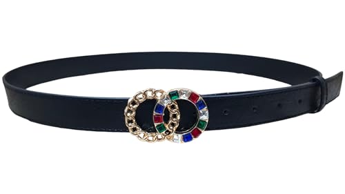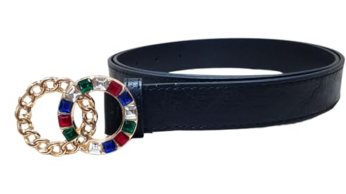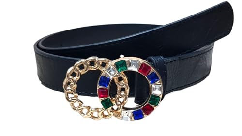 Generic - حزام جلد نسائي بابزيم معدن من اللون الذهبي ذات فصوص كريستال عصري