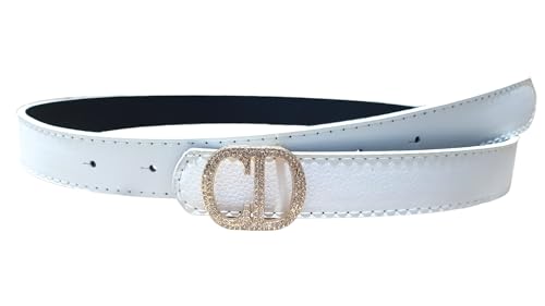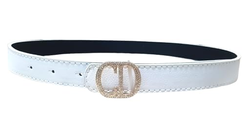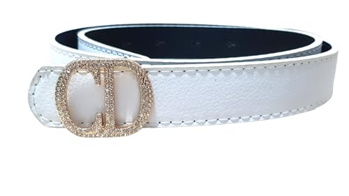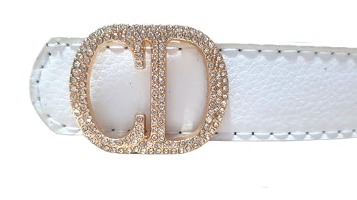 Generic - حزام من الجلد للنساء بابزيم ذات فصوص من الكريستال، الجلد الصناعي