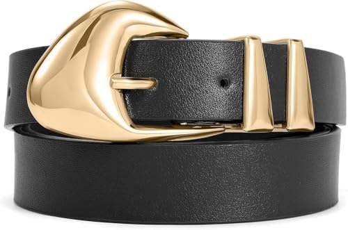 GQ - احزمة جلدية للنساء للجينز والبنطلونات الرسمية والاسود والبني للنساء، احزمة خصر مع ابزيم ذهبي