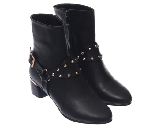 بوت جلد كلاسيكي بسوستة وكعب للنساء - اسود (41)
