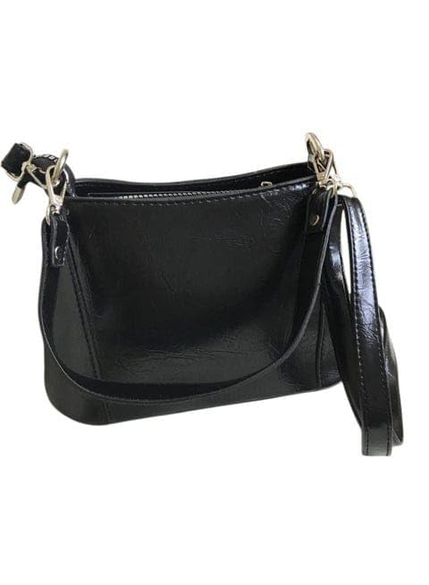 Generic - حقيبة كروس وهاند جلد نسائية بسوستة، أسود، تصميم عصري عملي للاستخدام اليومي