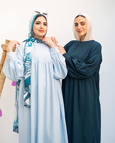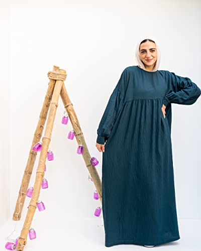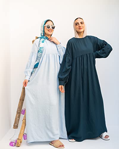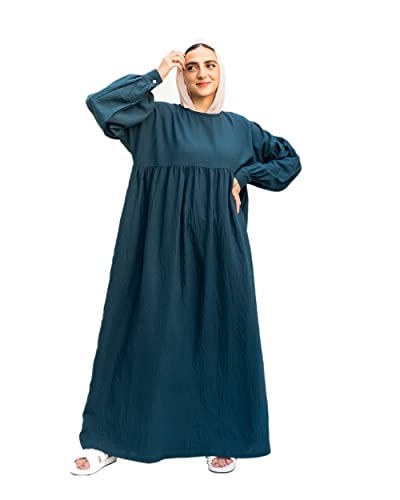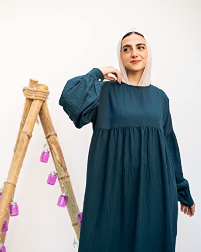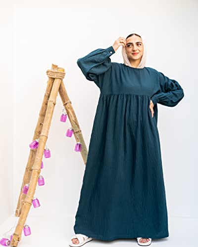 Pinky - فستان حجاب من الكتان للنساء، باكمام طويلة، نمط صيفي فضفاض