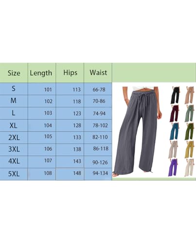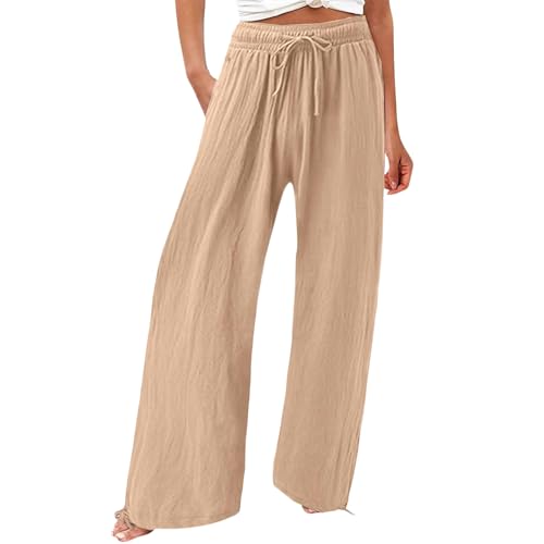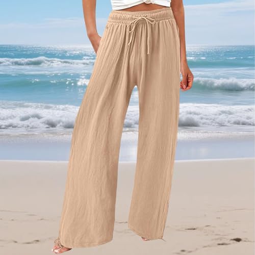 Geleglaer - بنطلون حريمي من الكتان بارجل واسعة للصيف بخصر مرتفع ورباط، بنطلون فضفاض بالازو كاجوال للشاطئ