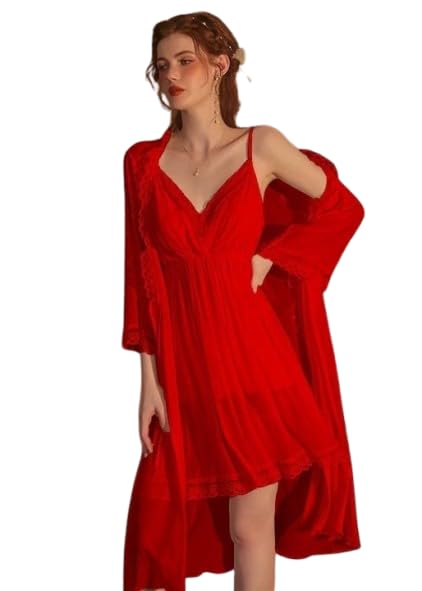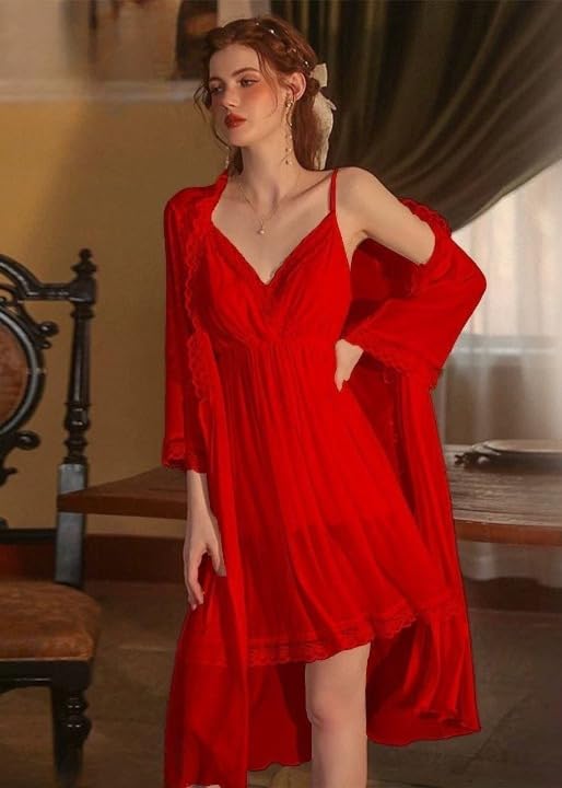 Generic - قميص نوم لانجري نسائي قطعتين (روب تل شفاف + قميص تل مبطن ليكرا) – وان سايز