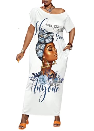 Generic - فستان نسائي طويل أبيض مع طباعة ملابس نوم قطن ليكرا فري سايز