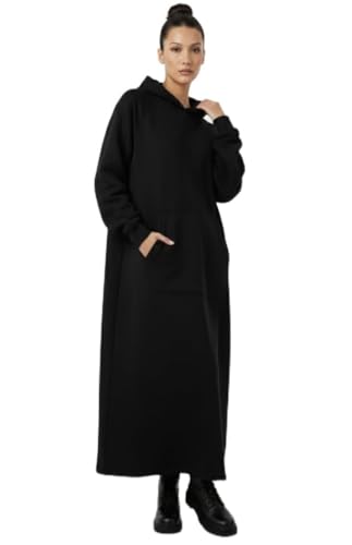 Generic - عباءة طويلة نسائية بقلنسوة، فستان مريح أسود مع جيوب، مقاس طويل اوفر سيز