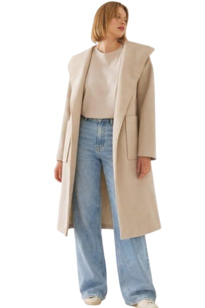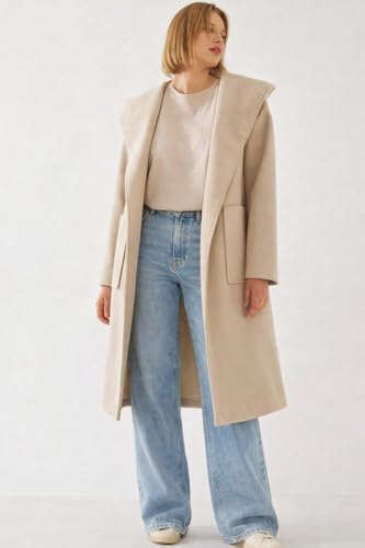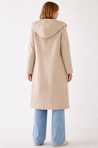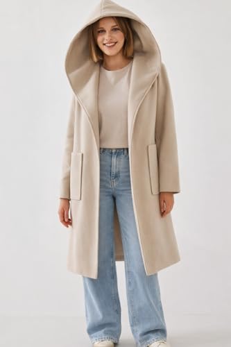 Generic - بالطو طويل بغطاء رأس من الصوف للنساء، معطف بحزام بتصميم كلاسيكي بصف أزرار مزدوج مع جيوب، ملابس خارجية شتوية، معاطف وجواكيت للنساء