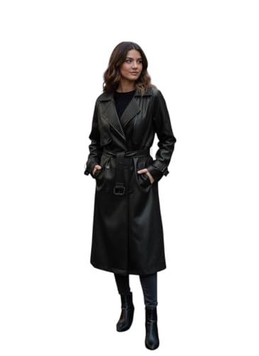 Generic - معطف جلد طويل للنساء، جاكيت جلد بحزام، بلطو جلد حريمي,كوت ون سايز يلبس ل 85كيلو الوان متعددهمقاس واحد حتى 85 كيلو، ألوان متعددة