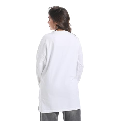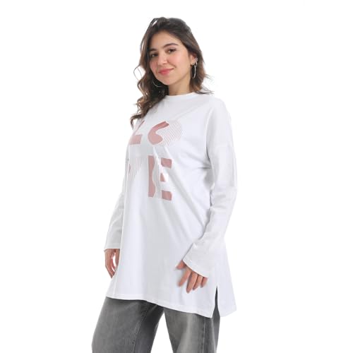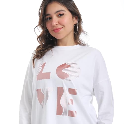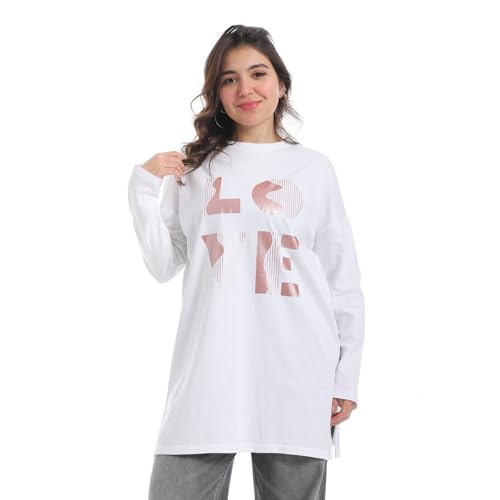 Coctail - تيشيرت طويل كاجوال فضفاض بطبعة جرافيكية بكلمة LOVE للنساء - 2651