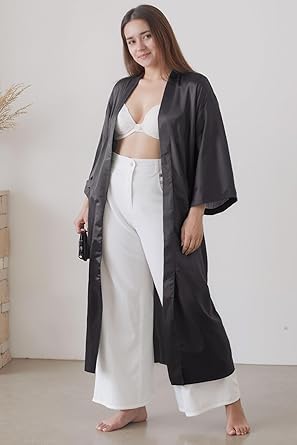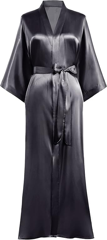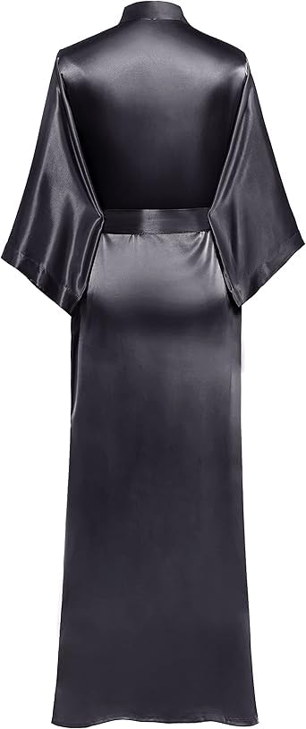 Generic - روب لانجري ساتان طويل باكمام واسعة للنساء باللون الرصاصي مقاس خاص من 90 :130 كيلوجرام
