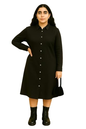 Generic - فستان قميص باكمام طويلة وازرار امامية للنساء، اسود، ياقة كلاسيكية، مقاس كبير، نمط عمل كاجوال