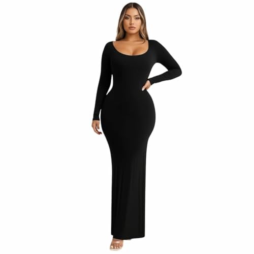 Generic - فستان نسائي طويل بأكمام طويلة، أسود، قطن، مقاسات متعددة