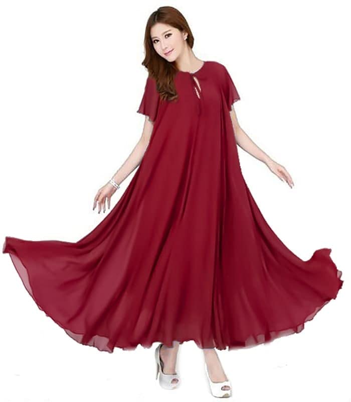 Generic - فستان للنساء باكمام طويلة وقصة واسعة ورقبة دائرية بلون واين
