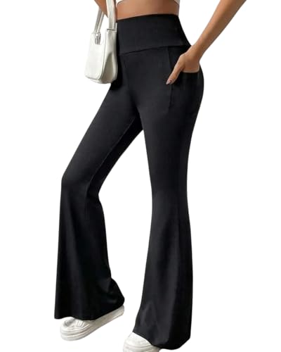 Generic - بنطلون نسائي واسع، شارلستون قطن، أسود، خصر مرتفع من ٥٠ ل ٩٠ ك