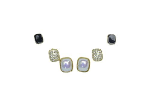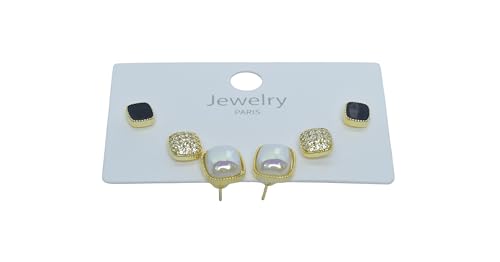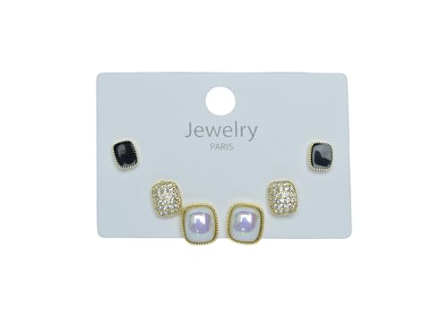 Generic - طقم اقراط فاخرة للنساء، 3 ازواج - ذهبي واسود