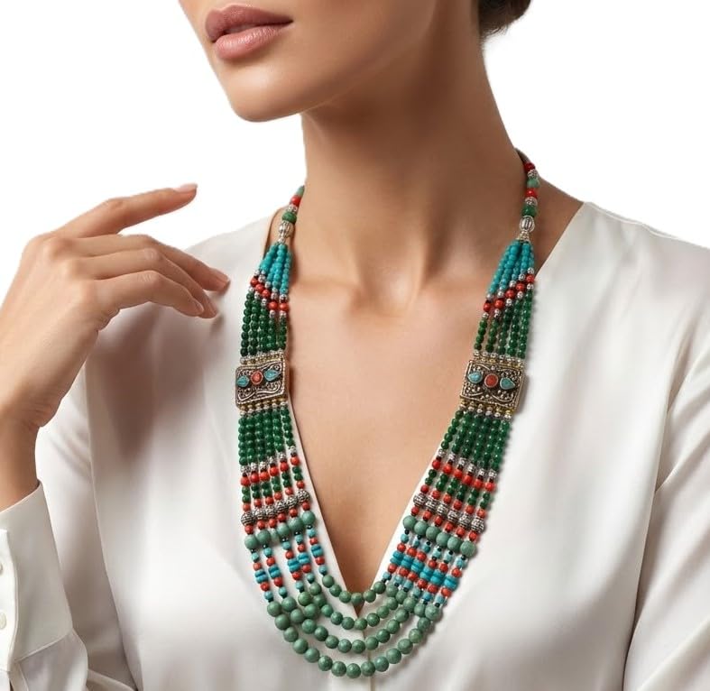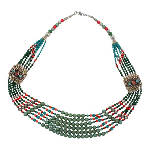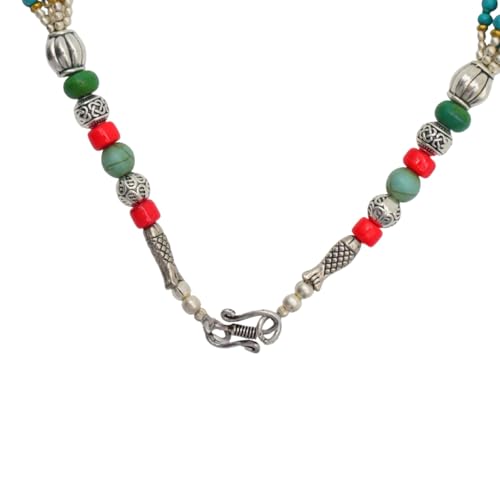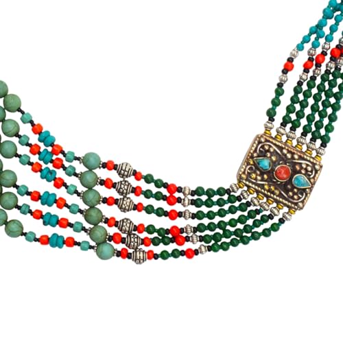 Indian Stones MA - عقد حريمي فاخر من الفضة المخلوطة بالنحاس اقل من العيار مرصع بأحجار طبيعية كريمة من الفيروز ولابس لازولي - تركواز ازرق