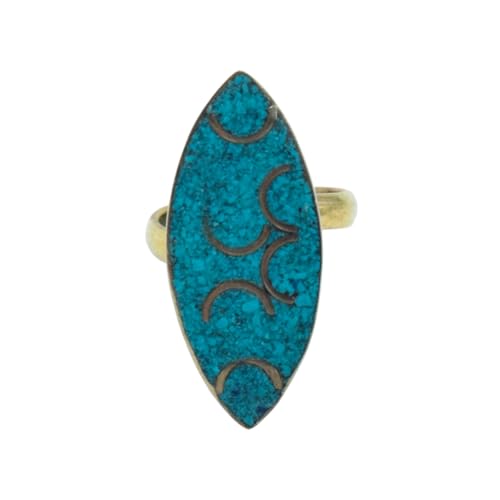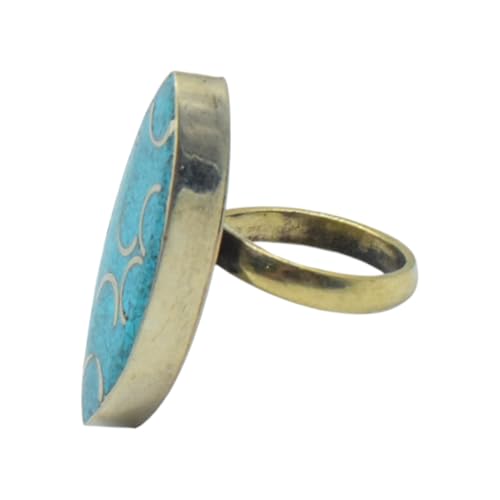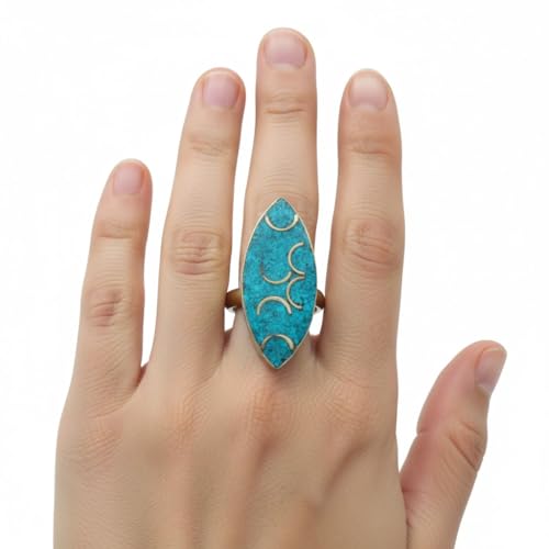 Indian Stones MA - خاتم حريمي فاخر من الفضة المخلوطة بالنحاس اقل من العيار مرصع بأحجار طبيعية كريمة من الفيروز ولابس لازولي والمرجان، مقاس واحد - متعدد الالوان R39