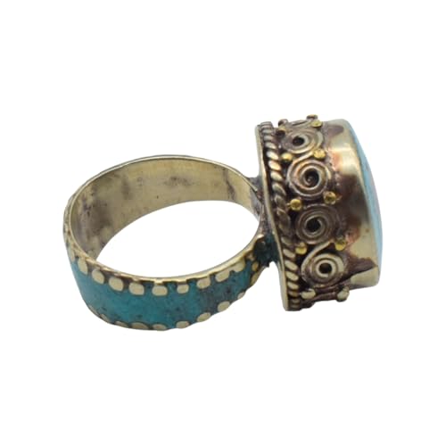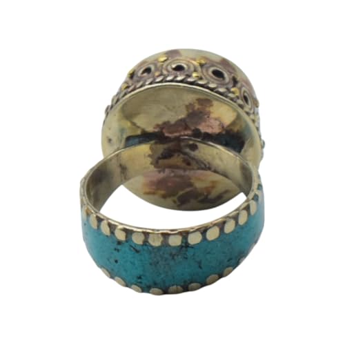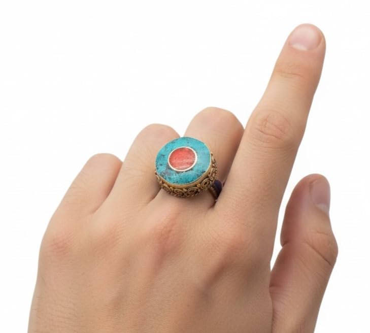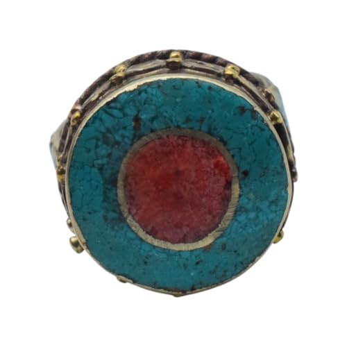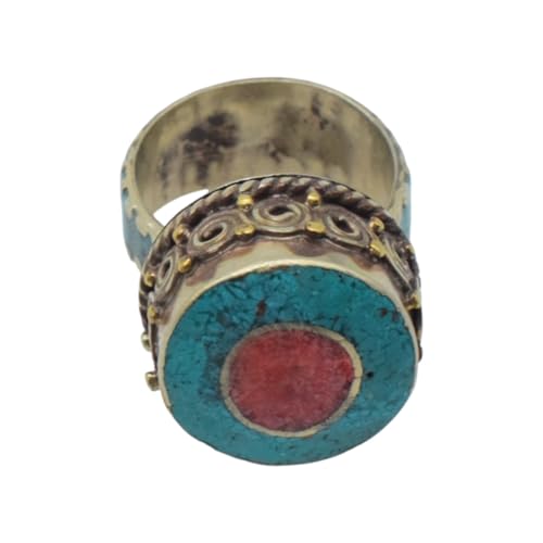 Indian Stones MA - خاتم حريمي فاخر من الفضة المخلوطة بالنحاس اقل من العيار مرصع بأحجار طبيعية كريمة من الفيروز والمرجان، مقاس واحد - تركواز احمر R32-2