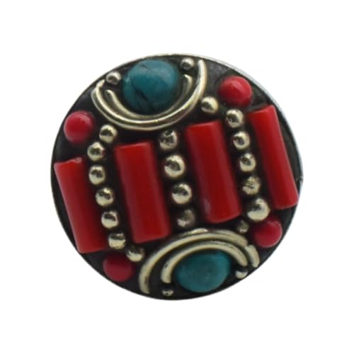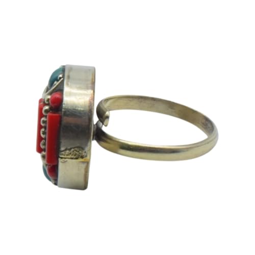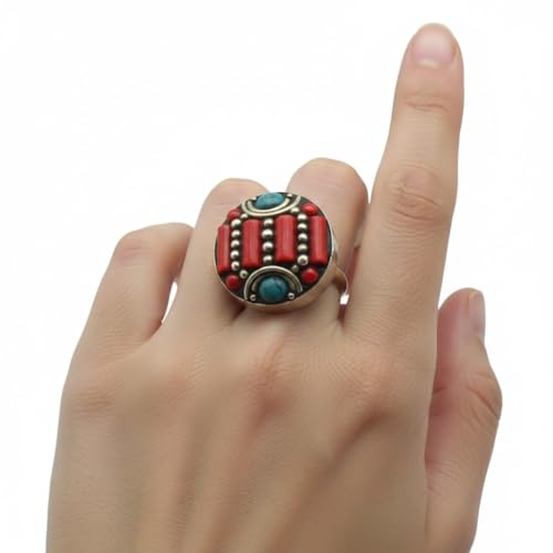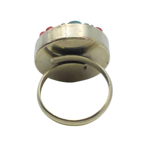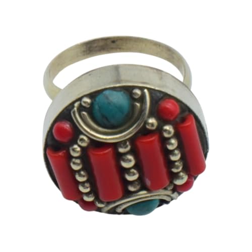 Indian Stones MA - خاتم حريمي فاخر من الفضة المخلوطة بالنحاس اقل من العيار مرصع بأحجار طبيعية كريمة من الفيروز والمرجان، مقاس واحد - تركواز احمر R5