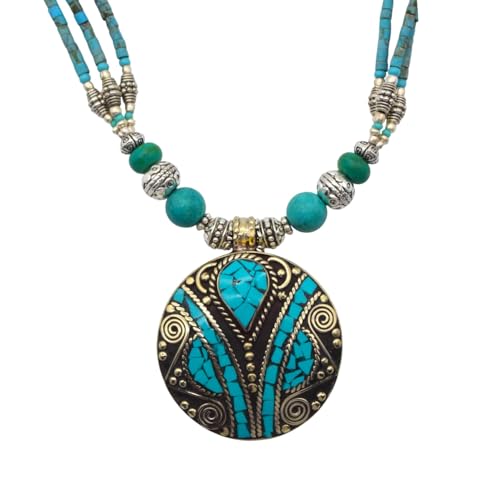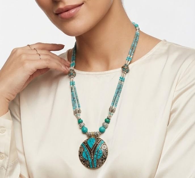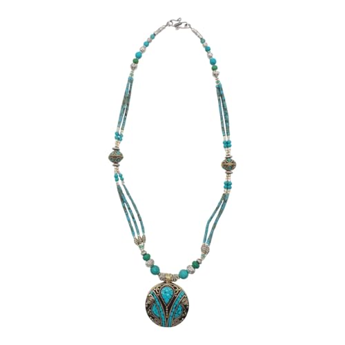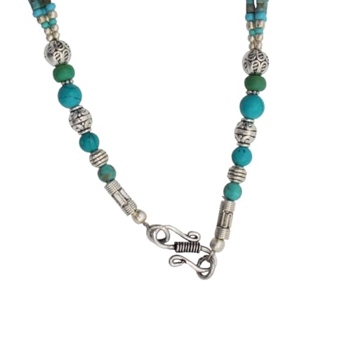 Indian Stones MA - عقد حريمي فاخر من الفضة المخلوطة بالنحاس اقل من العيار مرصع بأحجار طبيعية كريمة من الفيروز - تركواز