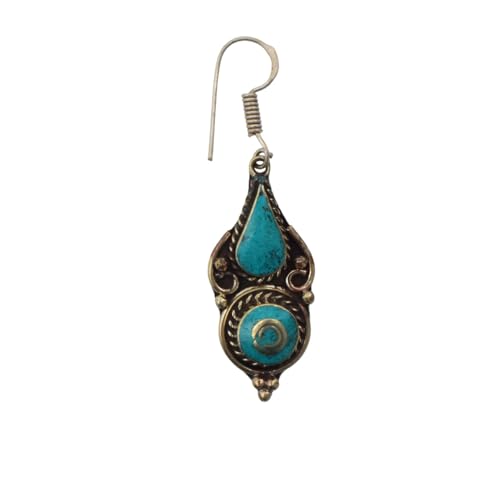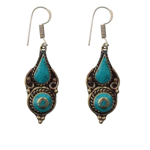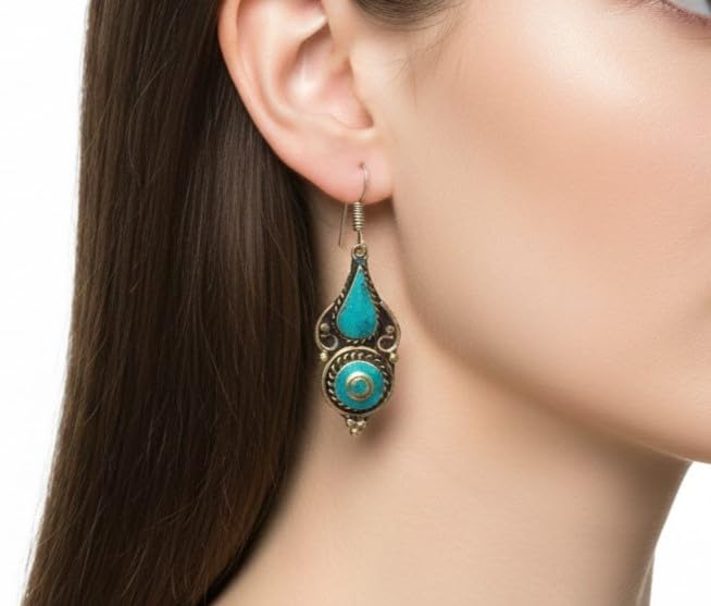 Indian Stones MA - حلق حريمي فاخر من الفضة المخلوطة بالنحاس اقل من العيار مرصع بأحجار طبيعية كريمة من الفيروز