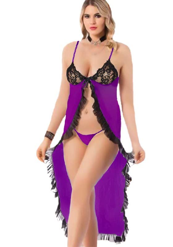 Generic - لانجيري نسائي مفتوح لون موف واسود طويل