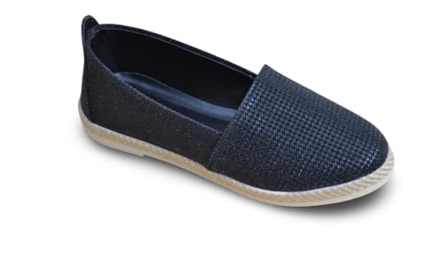 generic - حذاء اسبادريل بدون كعب سهل الارتداء بلون ذهبي ميتاليك للنساء، حذاء مسطح كاجوال كريستالي