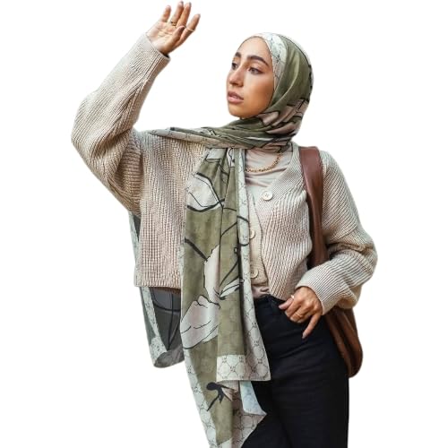 Generic - وشاح حجاب مودال مطبوع للنساء، نمط تجريدي اخضر، قماش خفيف الوزن